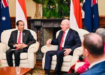 Presiden Joko Widodo dalam kunjungan kenegaraan ke Australia diterima Gubernur Jenderal Australia, David Hurley, di Admiralty House, Sydney, pada Selasa ...