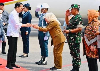 Presiden Joko Widodo dan Ibu Iriana Joko Widodo tiba di Bandara Internasional Juanda, Kabupaten Sidoarjo, Provinsi Jawa Timur, pada Selasa, ...