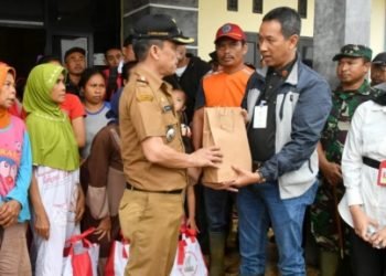 Kepala Sekretariat Presiden (Kasetpres) Heru Budi Hartono, mewakili Presiden Joko Widodo, menyerahkan langsung bantuan bagi masyarakat terdampak bencana tanah longsor ...