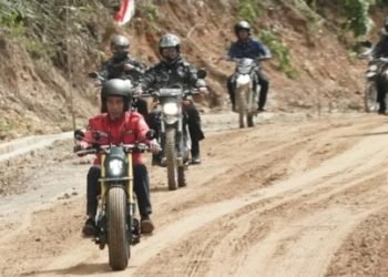 Presiden Joko Widodo menjajal jalan perbatasan trans-Kalimantan yang terletak di Kecamatan Krayan, Kabupaten Nunukan, Provinsi Kalimantan Utara, pada Kamis, 19 ...