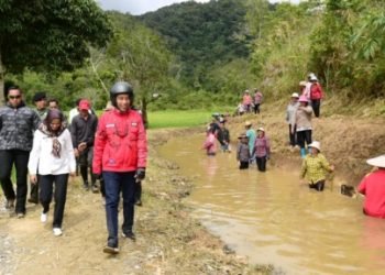 Dalam perjalanan menuju perbatasan RI-Malaysia, Presiden Joko Widodo meninjau proyek padat karya tunai di Desa Pa Api, Kecamatan Krayan, Kabupaten ...