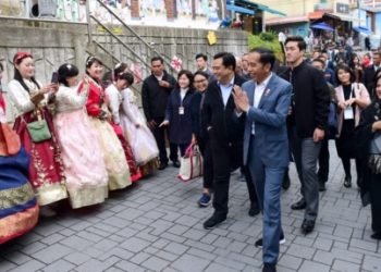 Presiden Joko Widodo dan Ibu Negara Iriana Joko Widodo pada hari ini, Minggu, 24 November 2019, meninjau Gamcheon Culture Village ...