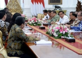 Presiden Joko Widodo bertemu dengan pengurus dan anggota Asosiasi Pertekstilan Indonesia (API) dan Asosiasi Produsen Serat Sintesis dan Benang Filamen ...