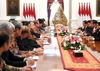 Presiden Joko Widodo menerima delegasi bisnis Jepang yang tergabung dalam Japan Indonesia Association (Japinda) yang dipimpin oleh Mantan Perdana Menteri ...