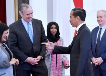 Presiden Joko Widodo menerima kunjungan anggota kongres Amerika Serikat pada Rabu, 12 April 2023, di Istana Merdeka, Jakarta. Dalam pertemuan ...