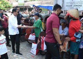 Presiden Joko Widodo mengunjungi sejumlah pasar yang ada di Kota Surakarta, Provinsi Jawa Tengah, pada Sabtu, 8 April 2023. Sejumlah ...