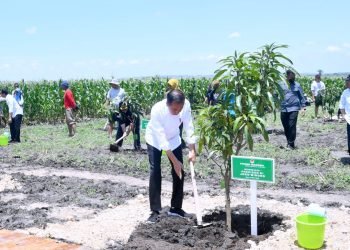 Presiden Joko Widodo melakukan kegiatan penanaman pohon bersama para petani di Areal Kesongo, Kabupaten Blora, Provinsi Jawa Tengah, pada Jumat, ...