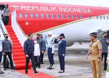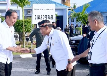 Presiden Joko Widodo dan Ibu Iriana Joko Widodo tiba di Pangkalan TNI AU Anang Busra, Kota Tarakan, Provinsi Kalimantan Utara ...