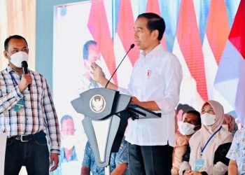 Presiden Joko Widodo menyerahkan kredit usaha rakyat (KUR) tahun 2023 sekaligus meluncurkan kartu tani digital untuk pupuk bersubsidi pada Jumat, ...