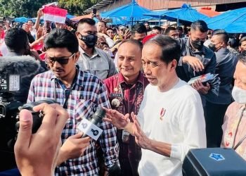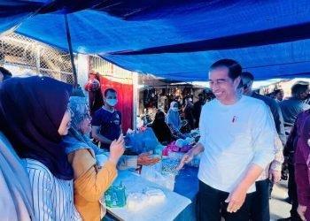 Kunjungan Presiden Joko Widodo ke Pasar Batuphat Timur, Kota Lhokseumawe, Provinsi Aceh pada Jumat pagi, 10 Februari 2023, disambut antusias ...