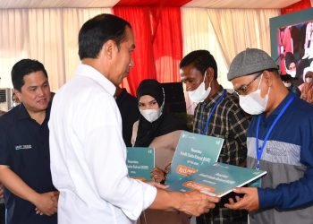 Saat menyerahkan Kredit Usaha Rakyat (KUR) dari Bank Syariah Indonesia (BSI) pada Jumat, 10 Februari 2023 di halaman Stadion PT ...