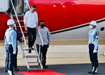 Presiden Joko Widodo tiba di Bandara Malikussaleh, Kabupaten Aceh Utara, Provinsi Aceh, pada Jumat, 10 Februari 2023. Kedatangan Presiden disambut ...