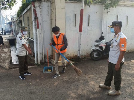 Kepala Satpol PP Kelurahan Kepala Dua, Isyap Syarifudin menuturkan, para pelanggar tersebut dijatuhi sanksi kerja sosial berupa menyapu jalan.