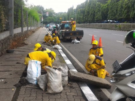 Selain membersihkan tali air, lanjut Heru, personel Satgas Bina Marga Kecamatan Pancoran juga memperbaiki conblok trotoar yang rusak di sisi jalan tersebut.