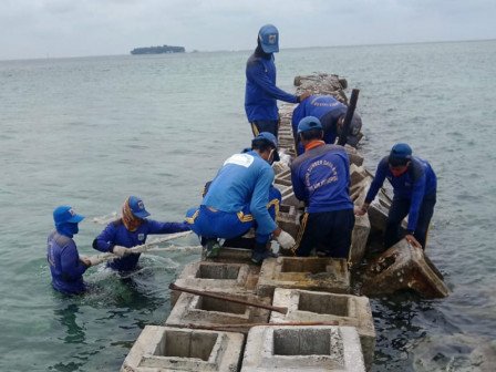 Kepala Suku Dinas SDA Kepulauan Seribu, Abdul Rouf mengatakan, sebanyak 10 personel dikerahkan untuk memperbaiki breakwater yang runtuh diterjang gelombang besar akhir pekan lalu.