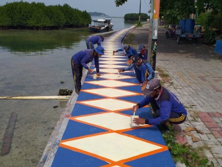 Hendri menjelaskan, untuk pengerjaan pengecatan tanggul tersebut dikerahkan sebanyak sembilan personel yang biasa bertugas di Pulau Pramuka.