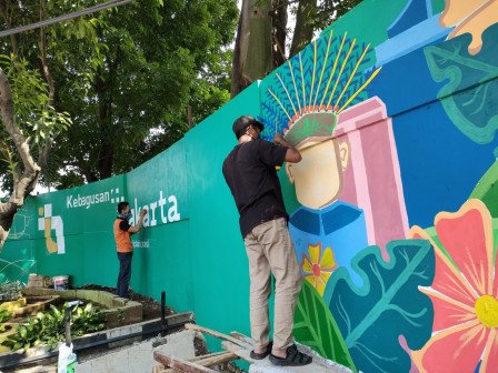 Kelurahan Kebagusan, Pasar Minggu, Jakarta Selatan, mempercantik tembok Pusat Pelatihan Olahraga Pelajar (PPOP) Ragunan, Jalan Harsono RM dengan lukisan mural.