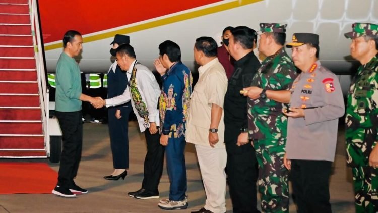 Presiden Joko Widodo tiba di Bandar Udara Sentani, Kabupaten Jayapura, Provinsi Papua dalam rangka kunjungan kerja pada Senin, 20 Maret 2023, sekitar pukul 19.45 WIT.