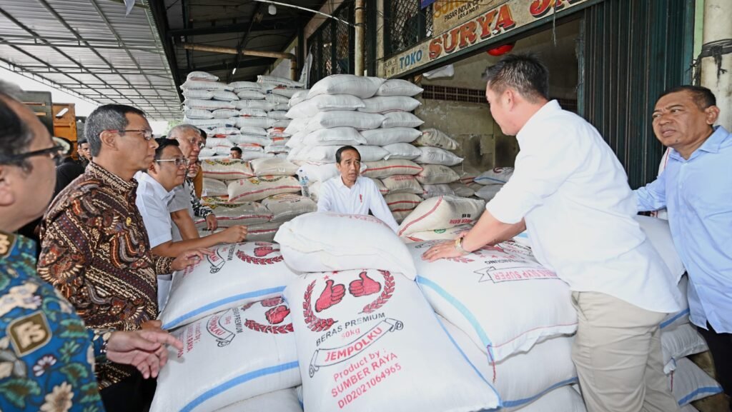 “Saya datang di Pasar Induk Cipinang ini untuk memastikan bahwa stok beras di sini ada karena dari sinilah didistribusikan ke ritel, ke super market, ke daerah, dari Pasar Induk Cipinang ini sehingga saya ingin pastikan beras yang ada di sini ada, tersedia, jumlahnya cukup, dan saya melihat melimpah,” ujar Presiden dalam keterangannya usai peninjauan.