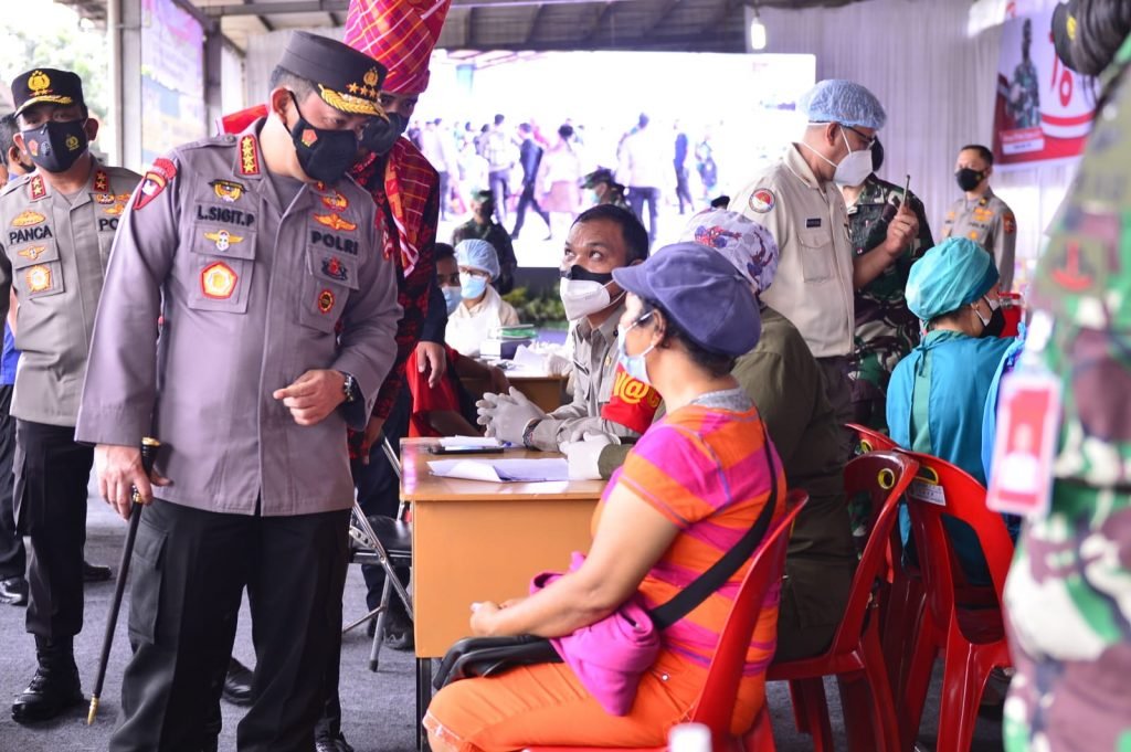 Panglima TNI dan Kapolri mengunjungi secara langsung vaksinasi massal di lokasi Pasar Induk Laucih, Medan. Di tempat itu, mereka berdua menyempatkan untuk menyapa secara virtual beberapa lokasi yang juga menggelar vaksinasi serentak di Sumut.