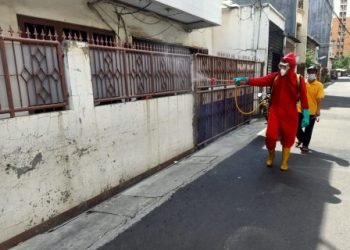 Read morePetugas Sektor VI Suku Dinas Penanggulangan Kebakaran dan Penyelamatan (Sudin Gulkarmat) Jakarta Utara dan Kepulauan Seribu melakukan penyemprotan cairan disinfektan...