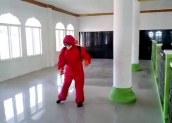 Masjid An-Ni'mah di Pulau Panggang Disemprot Disinfektan