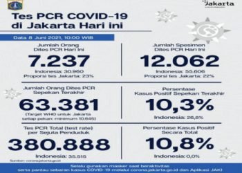 Perkembangan Data Kasus dan Vaksinasi COVID-19 di Jakarta per 8 Juni 2021