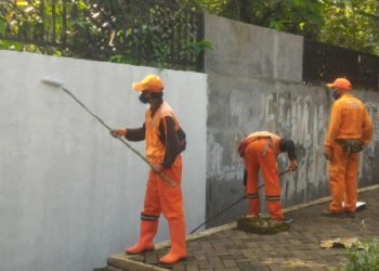 Read moreLima petugas Penanganan Prasarana dan Sarana Umum (PPSU) Kelurahan Grogol Utara, Jakarta Selatan, Sabtu (22/5), membersihkan coretan pada tembok di...