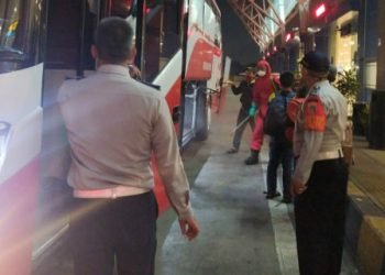 Bus AKAP di Terminal Terpadu Pulogebang Disemprot Cairan Disinfektan