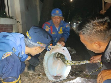 Perwira Piket Sudin Gulkarmat Jakarta Selatan, Sukur Sarwono mengatakan, ular sanca itu dievakuasi petugas dari lobang toilet bekas yang ditutupi tumpukan barang bekas.