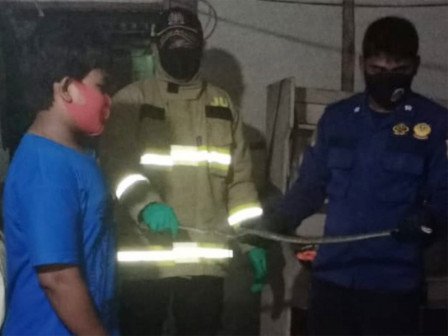 Seekor anak ular sanca sepanjang kurang lebih 70 sentimeter berhasil dievakuasi petugas Sektor 8 Suku Dinas Penanggulangan Kebakaran dan Penyelamatan (Sudin Gulkarmat) Jakarta Utara dan Kepulauan Seribu dari rumah warga di Pulau Lancang, RT 03/03, Kelurahan Pulau Pari, Kecamatan Kepulauan Seribu Selatan.