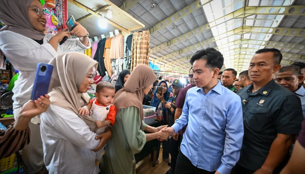 Wakil Presiden (Wapres) Gibran Rakabuming didampingi oleh Pj. Gubernur Sulawesi Selatan Zudan Arif Fakrulloh, Plt. Bupati Maros Suhartina Bohari, dan Kepala Pasar Rakyat Butta Salewangang Maros (BSM) Abd. Rasak, mengunjungi Pasar Rakyat BSM, pada Kamis, 14 November 2024.