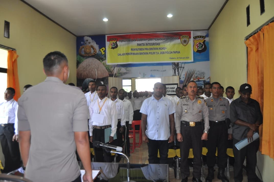 Wakapolres Jayawijaya Tanda Tangani Pakta Integritas Rekrutmen Pra Bintara Noken Polri
