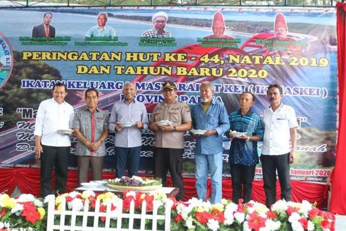 Jayapura – Wakapolresta Jayapura Kota Kompol Heru Hidayanto, S.Sos menghadiri peringatan Hari Ulang Tahun Ke-44, Perayaan Natal 2019 dan Tahun Baru 2020 Ikatan Keluarga Masyarakat Kei (IK MASKEI) Provinsi Papua bertempat di Pantai Hamai Distrik Jayapura Selatan, Sabtu (11/01).