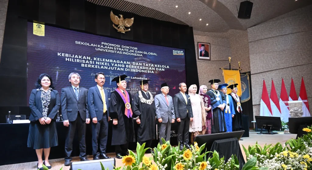 Promosi gelar doktor tersebut diberikan kepada Bahlil Lahadalia setelah ia menyelesaikan studi pada Program Studi Doktor Kajian Stratejik Global, Sekolah Kajian Stratejik dan Global (SKSG) UI selama 4 semester. Sebelum mendapatkan gelar doktornya, Bahlil Lahadalia terlebih dahulu memaparkan disertasinya yang berjudul “Kebijakan, Kelembagaan, dan Tata Kelola Hilirisasi Nikel yang Berkeadilan dan Berkelanjutan di Indonesia”.
