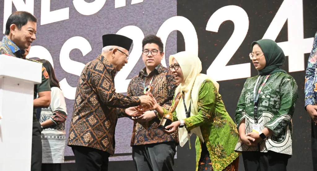 Jakarta, wapresri.go. id – Pemerintah untuk ketiga kalinya kembali memberikan apresiasi dalam bentuk Indonesia’s SDGs Action Awards 2024 kepada seluruh pemangku kepentingan, baik lingkup pemerintah maupun aktor nonpemerintah, yang telah konsisten mendukung pelaksanaan Tujuan Pembangunan Berkelanjutan/Sustainable Development Goals (TPB/SDGs) di Indonesia. Penghargaan diserahkan secara langsung oleh Wakil Presiden (Wapres) K.H. Ma’ruf Amin dalam seremoni Pembukaan Konferensi Tahunan SDGs atau SDGs Annual Conference/SAC ke-7 yang digelar di Hotel Fairmont Jakarta, Jl. Asia Afrika Nomor 8, Jakarta Pusat, Senin (07/10/2024).